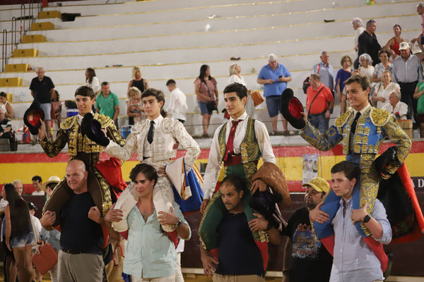 Un festejo de máximo interés, grandes alicientes y muy disputado entre los participantes que ha llenó por completo los coquetos tendidos -hasta la bandera- de Villacarrillo y en el que han participado de forma excepcional cuatro alumnos al existir un empate a puntos entre Galvín y Quintana, en la ‘Gran Semifinal’ celebrada en Montoro (Córdoba), para ocupar el tercer puesto en dicha Final de hoy.