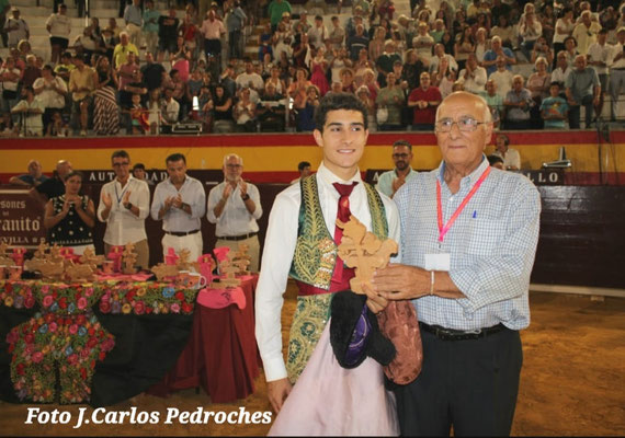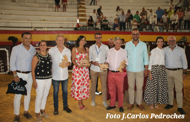 Recibieron D. David Gil, Secretario General de Interior de la Junta de Andalucía; D. Jesús Estrella, Delegado del Gobierno de la Junta de Andalucía en Jaén; D. Francisco Ruiz Miguel, maestro y gran figura del torero; D. Enrique Romero, Jefe de las Retransmisiones Taurinas de Canal Sur Tv y Director del Programa “Toros para Todos”; Dña. Noelia López, Micrófono inalámbrico de Canal Sur Tv; y D. Eduardo Ordóñez, Presidente de la Asociación Andaluza de Escuelas Taurinas “Pedro Romero”.